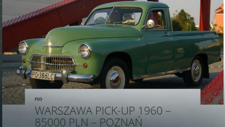 Niecodzienny egzemplarz legendy polskiej motoryzacji szuka nowego właściciela. Na sprzedaż wystawiono Warszawę Pick-up z 1960 roku. Chętny na zakup samochodu będzie musiał głęboko sięgnąć do kieszeni, gdyż jego cena wynosi 85 tys. zł.