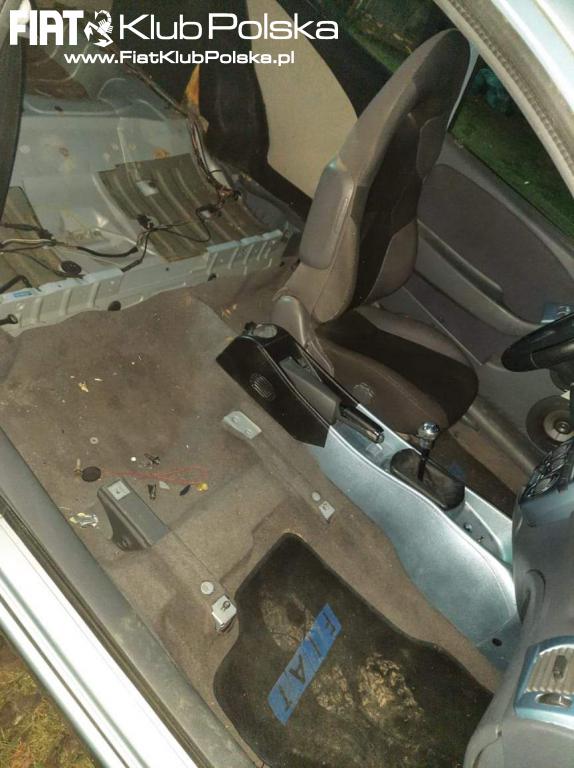 Póki co wywaliłem progi, zderzak, wydechy, tylną lotkę i ledy z wnętrza. Wleciały przednie fotele z alfy TI, kompletna tylna kanapa, tunel środkowy z marei, progi ori HGT, ori lotka, zderzak tył oryginał plus abarthowskie "skrzela", zwykła maska...