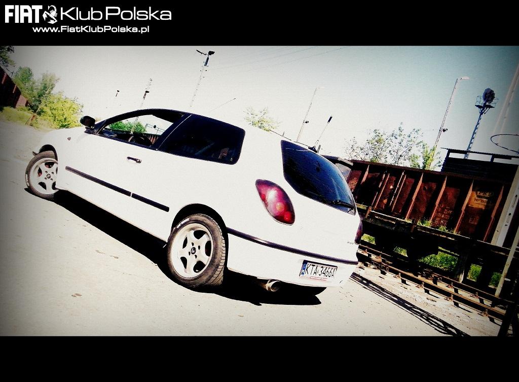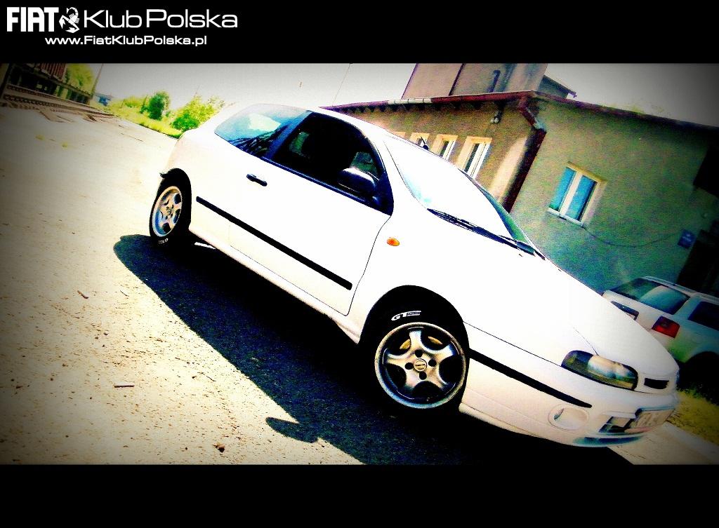 | Fiat Bravo 1.2 16V Samochód sprowadzony z Włoch w 2009r. Jestem drugim właścicielem w Polsce. Samochód przeszedł modyfikacje: -sportowe wałki rozrządu, fajna praca od 3 tyś obr. -stożkowy filtr powietrza, -wycięty katalizator (przelotka) -Opony Radial GT 185/55/ R15 -skrzynia biegów z Punto II 2001r (nowe łożysko i uszczelniacz) -sprzęgło kompletne LUK -akumulator NordStar -olej Castrol Magnatec 10w40 Car-audio: Jednostka sterująca Panasonic CQ-C1323NW Wzmacniacz Blaupunkt bqa 107 Tuba LTC 200W Głośniki Blaupunkt 60W+25 Oczywiście po zakupie wymienione świece, filtry, olej. Spalanie na trasie 5,6-6l miasto 7,5-8l. V-max 185km/h przy 5500obr/min Zaplanowane zmiany: -nakładki progowe -dokładka przedniego zderzaka -alufelgi GTR sport 16" -położenie od nowa białej perły i lakieru bezbarwnego. -sportowa kierownica -fotele kubełkowe -szelkowe pasy Plany mechanicznych zmian: -polerowany dolot -wydech przelot z nierdzewki -sprężyny -40min -być może wymiana tylnych wahaczy i założenie tarcz Jeżeli te plany zostaną zrealizowane to możliwe ze będzie swap z fiata punto I GT 1.4 8V turbo. | ||||||||||||||||||||||||